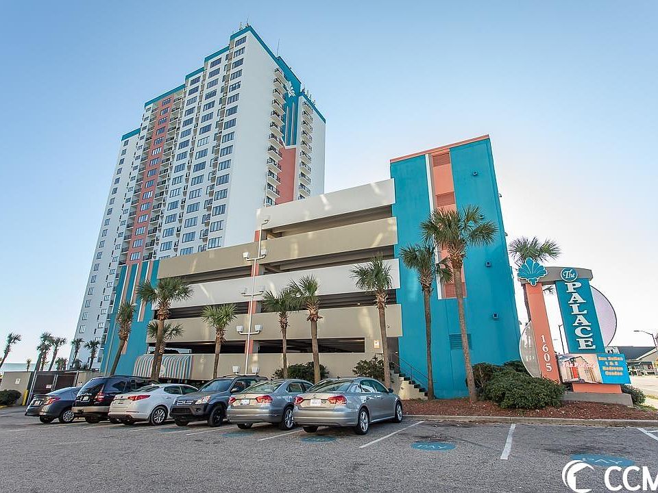 A MUST SEE totally renovated spacious 2 bedroom, 2 bath with a great layout! Current owners poured their heart, blood, sweat and tears into this unit with the intention of using it themselves. Unfortunately for them due to circumstances they have to let it go, but very fortunate for the next owner. All popcorn ceilings removed, fresh paint, new wood flooring, newer appliances, cabinets redone, and a glass tile backsplash added, granite countertop. Furnishings updated, as well as the bathrooms with disabled safety bars added. Don't miss the glide down TV (controlled remotely) in the master bedroom for convenience, fireplace and much more. The balcony has also been repainted and faces the southern view of the ocean with gorgeous sunsets, accessible from living area and master bedroom. The Palace resort features an abundance of amenities including outdoor pool, indoor pool, whirlpools, sauna, exercise room, putting green, restaurant/lounge. Minutes from Market Commons, Boardwalk, Broadway at the Beach and Myrtle Beach Airport. Great opportunity for vacation home, rental or primary residence on the beach! Parking garage