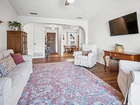 Well-loved home on a quaint Cul-de-sac nestled in the heart of Garland. Curb appeal soars here with the landscaped yard and newly built (2025) flagstone covered patio. Enjoy sunrises and sunsets on the regular with this quiet and homey front yard. Upon entry, enjoy warm alabaster tones and wood finishes that wrap the home in comfort. A custom archway centers the home with vaulted ceilings making the living area feel spacious and welcoming. Sliding glass patio door gives views to scenic backyard with wooden fence and mature shade tree. Galley kitchen hosts granite countertops, refinished cabinetry and sleek black hardware. Convenient laundry area located just off kitchen with built-in cabinets. Large primary bedroom features a walk-in closet and updated ensuite bathroom. Classy white porcelain tile shower surround and a black arched vanity mirror accompany the ensuite. A home office made easy with a built-in desk and cabinets in one of the guest bedrooms. 2 car garage. Additional updates: double pane windows throughout (2023) living area and hall tile floor (2022) carpeted bedrooms (2022) and rear gutter addition (2023). Minutes from Downtown Garland’s $45MM renovation including picturesque Downtown Square and the Central Library. Firewheel Town Center, various parks, dining, and shopping all within a short trip. Make this well-maintained home yours before the holidays!
