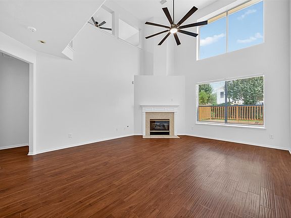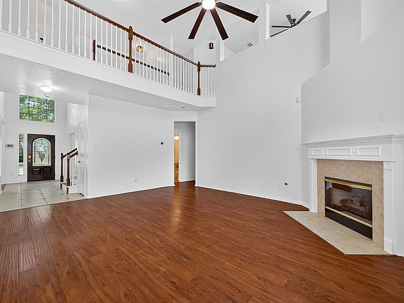 Welcome to this beautiful Pearland home offering space, style, and functionality throughout. A formal dining room and dedicated office provide versatile living options, while the high-ceiling living room with a cozy corner fireplace creates a warm, inviting atmosphere. The modern kitchen features an island, breakfast bar, and double ovens, opening seamlessly to the living room and dining space for effortless entertaining. The primary suite is a private retreat with dual sinks, a vanity area, a soaking tub, a separate walk-in shower, and a spacious closet. An upstairs loft adds even more flexibility for a game room, media space, or additional office.