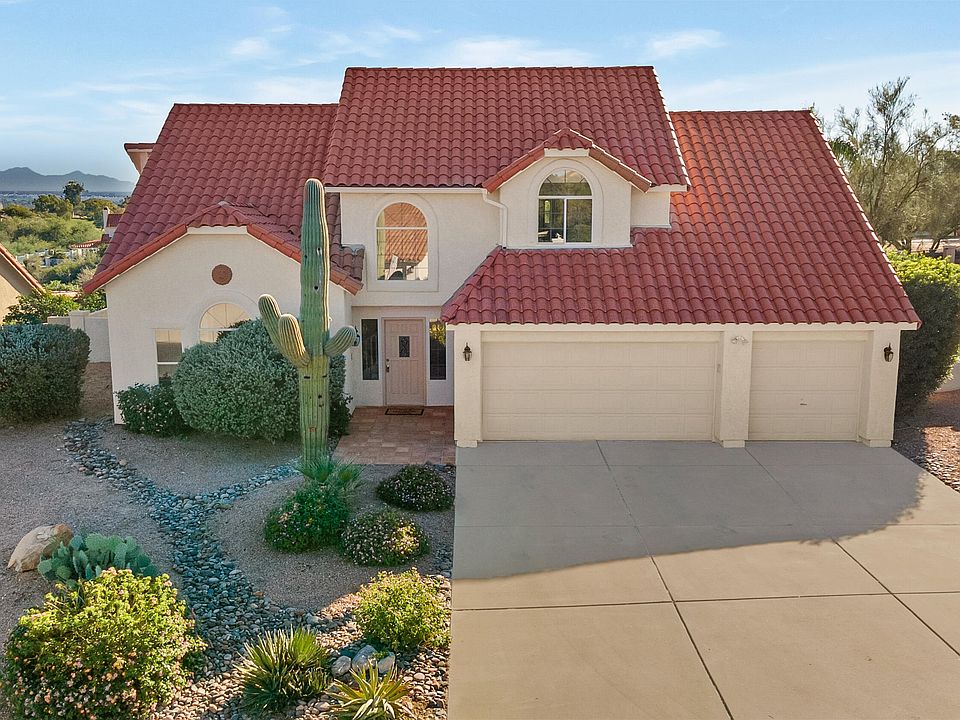 Welcome home to your completely remodeled slice of heaven. This stunning home sits on the El Conquistador par-3 green with beautiful Catalina Mountain and city views. Walk into a bright open floor plan with designer finishes, and a luxury modern feel. The chef's kitchen features newer appliances, gold-veined quartz counters, updated fixtures and plenty of prep & storage space. Primary bedroom is conveniently located downstairs for complete privacy. 2 additional bedrooms with a jack n Jill bath and bonus loft/office is located upstairs. Enjoy peaceful mornings, breathtaking sunsets, and the ultimate indoor/outdoor lifestyle.Walk to the Oro Valley Country Club and enjoy golf, pickleball, fitness and swimming with low monthly membership options. Large 3 car garage for all your toys. Located at the end of a private cul-de-sac. Move-in ready, turn-key, and feels like a brand-new home. Owner/Agent.