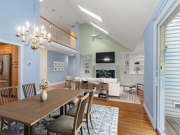 Welcome to The Meadows, one of Wayland’s most desirable communities, nestled in a serene woodland setting. This elegant townhome blends comfort with low-maintenance living and an opportunity to create your dream space. Inside, soaring ceilings, skylights, built-ins, and a cozy fireplace create a warm, inviting living room—perfect for entertaining or everyday life. The formal dining room opens to a bright eat-in kitchen with a sunny breakfast area. The first-floor primary suite provides single-level ease with generous space and ample closets. Additional highlights include first-floor laundry and direct access to a private deck and pet-friendly outdoor area. Upstairs features a flexible layout with a second bedroom, private office/den, and a large loft ideal for family, guests, or creative space. With a two-car garage and maintenance-free lifestyle, this home is perfect for downsizing, rightsizing, or beginning a new chapter. *Some photos have been virtually staged.