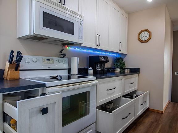 Oversized man caveDream kitchenHeated shopMezzanine storageNew vinyl plank flooringGourmet custom kitchenPot drawers