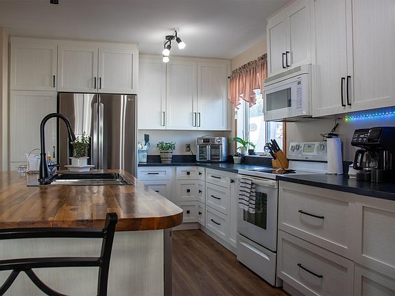 This home is every couples dream! A shop also known as an oversized man cave for him & a dream kitchen for her all in this one of a kind property! Yes you heard it right a 26 x 32 ft heated shop with mezzanine storage, new insulated overhead double 7 x 16 garage door to get your truck in, ceiling height 10 ft and 220 volt power! Our lady of the house who finally got her dream kitchen, new vinyl plank flooring, newer vinyl windows & doors, asphalt shingles, air-conditioning, opened up main floor & so much more. This dream gourmet custom kitchen has Brand New Stainless Steel Fridge & Built in Dishwasher, Built-in Microwave, Stove, 42 Upper Cabinets, Pot Drawers, Electrical upgrades, lighting & a stunning Island with Sink. Basement is mostly finished with two more bedrooms, living room, office & is easy to make into a suite with the separate side entrance. The Huge deck, tones of parking, RV parking, fenced yard & steps to everything.