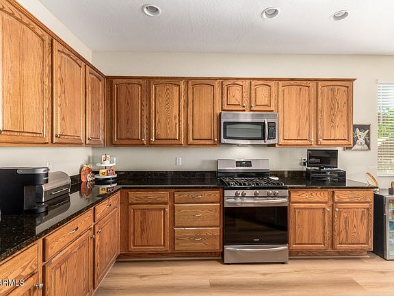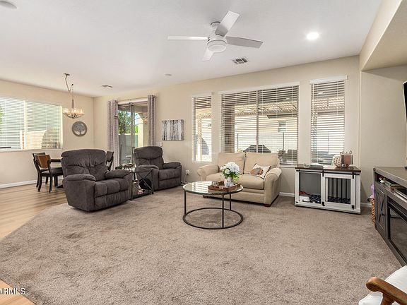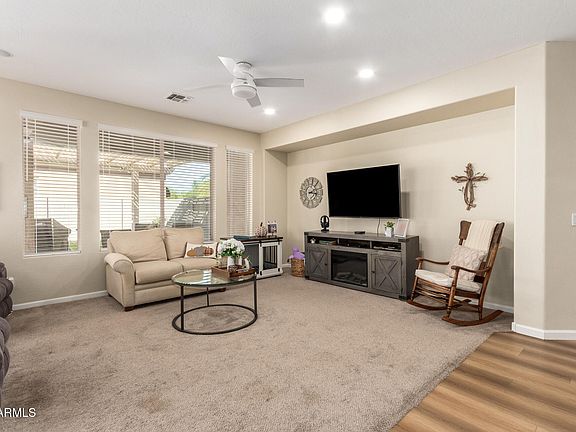 Darling home with open floor plan on large, enclosed corner lot with plenty of room for a pool or casita. Backyard re-landscaped & new irrigation front/back; extended covered patio is ideal for entertaining. Efficient kitchen with Solatube for extra natural light, newer stove & dishwasher, granite counters, island w/ bar, pantry, small desk & dining area all open to great room with easy access to backyard. Primary suite with bay windows, walk in shower, new plumbing fixtures & large closet. Guest bedroom can easily double as a home office. Other important features: LVP flooring (2023), custom lighting added (2022), water softener & water heater (2023), interior/exterior repainted (2021). House is move in ready so you can enjoy the stunning resort-style amenities this season!