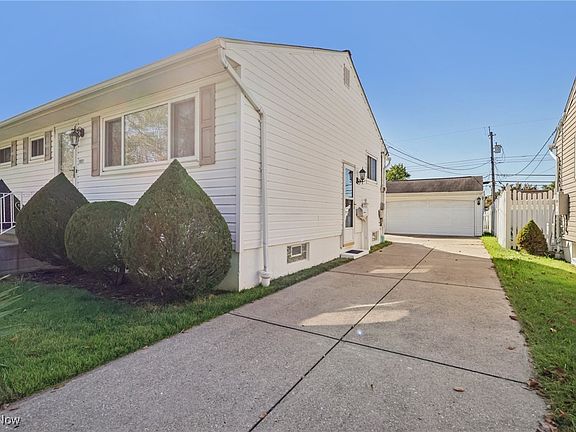 Welcome to this adorable and impeccably maintained Brook Park ranch! Thoughtfully designed with a comfortable layout, this home features 2 bedrooms and 1.5 bathrooms. The updated kitchen offers an abundance of cabinets and counter space, while the completely renovated full bathroom showcases a granite vanity and a relaxing soaker tub. Additional highlights include wainscoting, custom window treatments, hardwood floors beneath the carpet, and fresh paint throughout. The finished basement adds valuable living space, a bonus room with built-ins, laundry room and bathroom ready for finishing touches. Off the dining room, French doors (storm shutters added for peace of mind) open to a charming covered porch with pergola, overlooking a manicured, fully fenced yard. A 2-car detached garage with storage shelving and electrical adds convenience. Recently updated Furnace and AC - Situated in a city known for its exceptional services and amenities, this home is close to highways, shopping, Metroparks, and more!