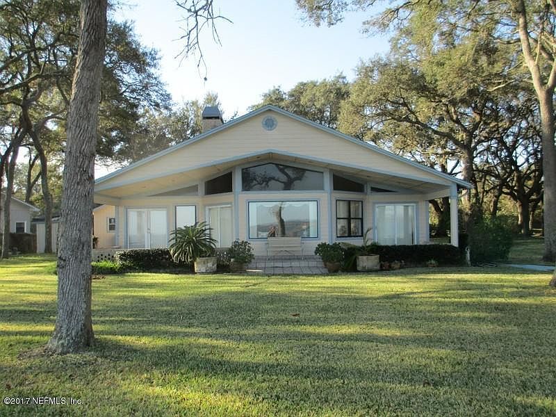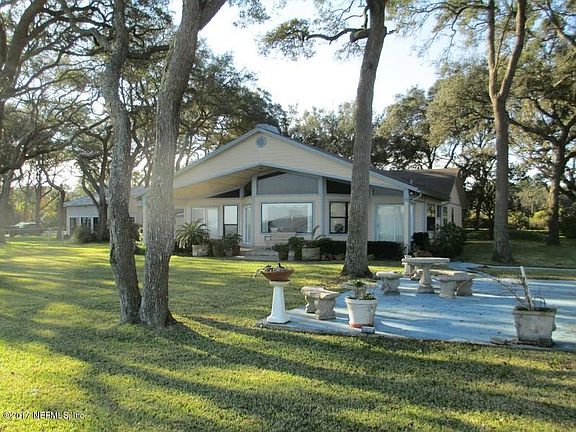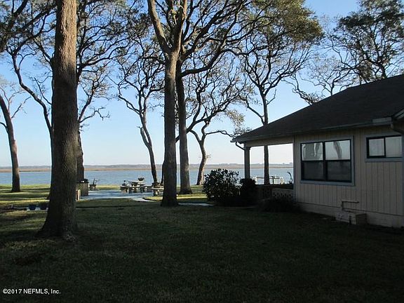 Beautiful waterfront home on a 1.2 acre lot with direct access to the intracoastal waterway and inlet to the Atlantic. Gorgeous water views from most rooms with Ospreys and Sea Turtles sharing your backyard. Located on Black Hammock Island on one of the most desirable stretches of shoreline. The home was built in 1989 and a 1000 sq ft extension was added in 1993. There is a stone tiled porch across the entire water facing side of house, and an attached patio area. The side yard has a detached garage with a full bathroom. There are three bedrooms plus an office, three full baths and plenty of storage. The master suite has french doors onto the porch, a sitting area, walk-in closet, double sinks and a jacuzzi tub.