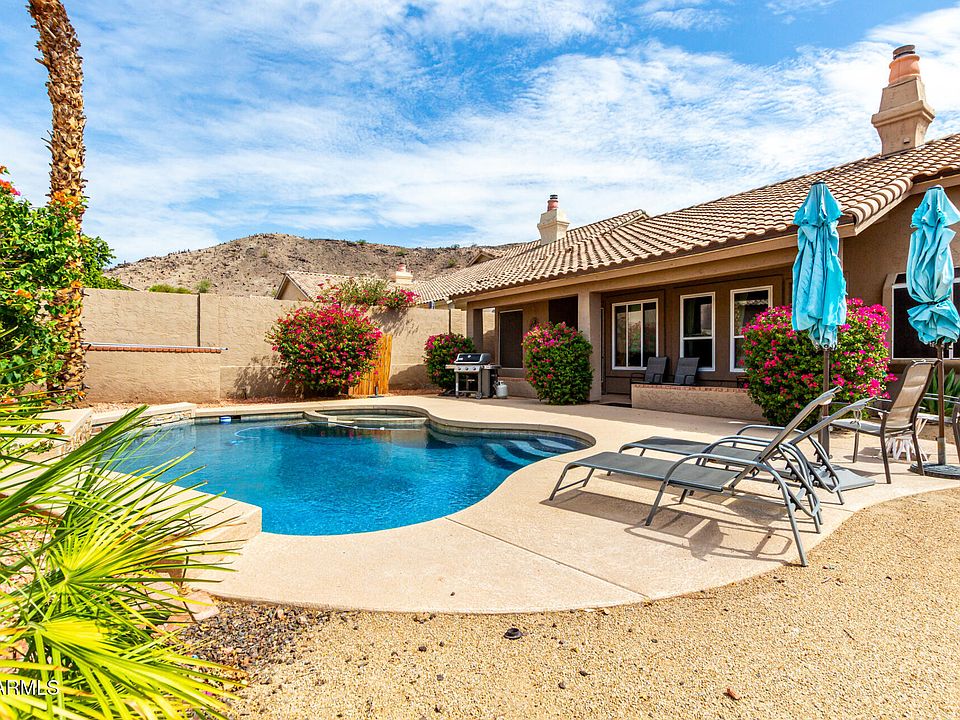 Set against the stunning backdrop of beautiful South Mountain, this inviting home is nestled in the Ahwatukee Foothills and the heart of the Kyrene School district. In addition to having easy access to hiking trails and the 202 FRWY, this home provides the ultimate in peace of mind. Major systems have already been upgraded including a NEW ROOF, HVAC, FLOORING, WINDOWS, POOL HEATER and FILTER. Your peace of mind allows you to truly relax in your private backyard oasis, lounging by your heated pebbletec pool and spa while enjoying sweeping mountain views from your spacious corner lot. Don't miss out on owning your very own slice of paradise in the desert