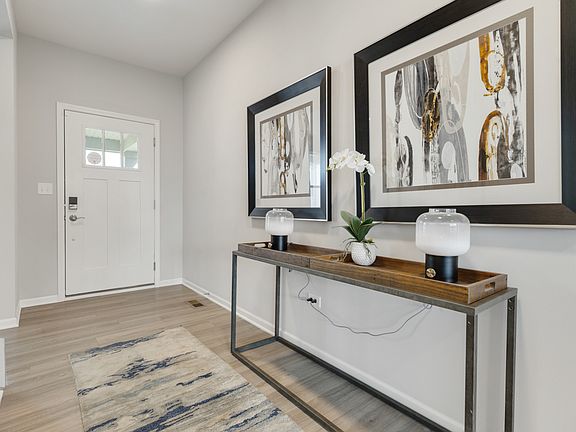 Step into this stunning former model home, beautifully appointed with custom paint, designer wallpaper, and thoughtful upgrades throughout. Furnishings are available for purchase, offering the opportunity to move right in and enjoy the model-home lifestyle. The Rainier floor plan features four spacious bedrooms, two and a half bathrooms, a flex room and laundry on the first floor, plus a versatile second-floor loft-perfect for a playroom, homework zone, or home office. The dream kitchen is the heart of the home, showcasing 42" Aristokraft cabinetry, elegant quartz countertops, a center island, walk-in pantry, GE stainless steel appliances, and a bright breakfast room that opens to the backyard-ideal for entertaining. Retreat to the luxurious primary suite, complete with a walk-in closet and private bath featuring a dual-sink quartz vanity. Three additional bedrooms all include walk-in closets, and the open loft adds flexible living space for the whole family. Additional highlights include 9-foot ceilings on the first floor, Shaw vinyl plank flooring, 30-year architectural roof shingles, exterior masonry accents (per plan), and fully sodded and professionally landscaped yards. Located in the sought-after Plainfield North School District, this home offers easy access to Downtown Plainfield's shops, dining, and entertainment, major transportation routes, and the Route 59 corridor.