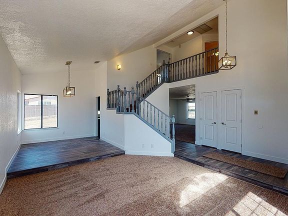 Newly remodeled two story home in Apple Valley with views to the east and the south. The home has 4 bedrooms up stairs in a split floor plan layout. The kitchen has new stainless steel appliances, quartz counter tops, new plumbing fixtures. New flooring throughout. The home has a bonus room that can be used as a game room, craft room, or office. The light fixtures, plumbing fixtures are all new. The bathrooms have been update with quartz counter tops and flooring.