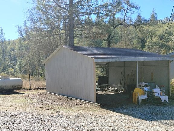 Wonderful creek scene. See and hear year round Wolf Creek from your front deck. Other amenities include another covered deck, large corrugated metal shop, RV covered parking, carport next to house and fencing for livestock. AG zoning -bring on the 4Hers. 2 bedroom ADU sized home could allow for a second larger unit if septic allows. Bring your hammer and paint brush-TLC needed- likely needs a roof, flooring, HVAC and more. But what a sweet location- you can't find an accessible creek like this one! Bring the gold pan...