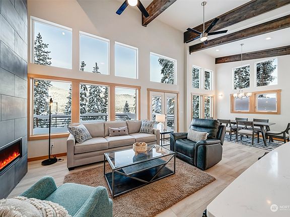 Lake Wenatchee & Dirtyface views from this Graham Custom Home on 1/2 acre with heated driveway. 2,489 square foot Modern build ~ 3 Bedrooms/3 Bath with living area on both floors. 10' x 32 lake view deck. Exterior siding & posts milled from trees on lot. Heated tile entry, hydrogenic floor heat on lower level, solid wood doors, heated bathroom floors, Primary Bedroom has amazing views, Primary Bath includes rain/body shower w/Sauna. Kitchen with large island, prep sink, pot filler, Kitchen Aid Appliances. 700 square ft Lakeview covered/open air living space with real rock wood burning fireplace & electric overhead heat. Gas round table for summertime enjoyment. Gas generator backup system. Property backs national forest.