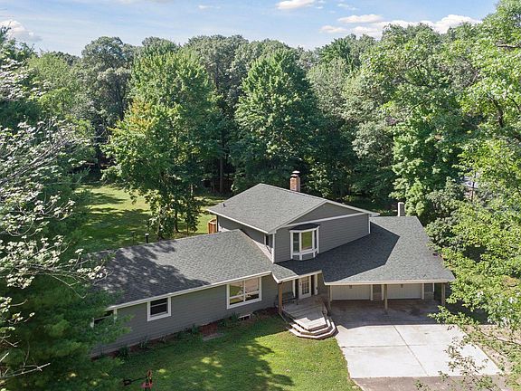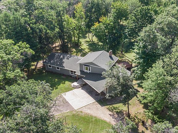 The kitchen was redone in 2022 and the lower level partially finished with another bedroom, bath & kitchen with walkout access. Numerous updates include new septic system in 2021, new Anderson windows and patio doors, roof fascia & siding in 2018, new well pump, new furnace + more. See supplement. Access from upper level to garage attic storage. The main level is open and spacious with a fireplace in living room. New lighting fixtures. Main level washer and dryer hookups (current washer & dryer on main level do not stay with house). Hardwood floors on main level bedrooms. Large primary suite on upper level with fireplace, 2 walk-in closets and deck overlooking back yard. Enjoy wooded privacy, nature and wildlife. Just 30 minutes to downtown Minneapolis and St. Paul.