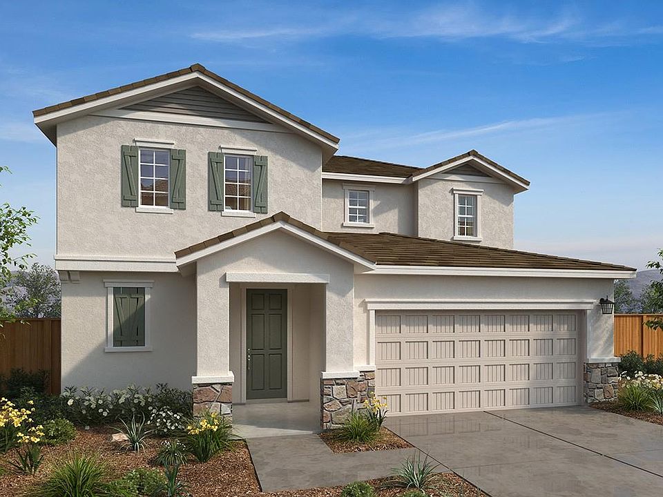 Under Construction - Discover timeless charm in this French cottage-style two-story home within the new Arcadia at Stanford Crossing community. Ideally situated near the Lathrop Generations Center and Lathrop High School, residents enjoy access to neighborhood parks, river trails, and the San Joaquin River for outdoor recreation. Commuting is effortless with nearby I-5, I-205, and I-580 connecting to Dublin, the Central Valley, and the Bay Area. Inside, 9-ft. ceilings enhance the open-concept design featuring a spacious great room and a kitchen with a central island overlooking the living area. A first-floor bedroom offers convenience for guests, while upstairs includes a laundry room and a generous primary suite with a walk-in closet. Energy-efficient features include low-E windows, WaterSense® fixtures, an electric water heater, and Whirlpool® appliances. Personalize your home with cabinetry, countertops, flooring, and preferred bath options while construction is underway.