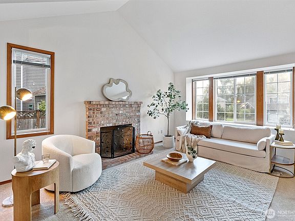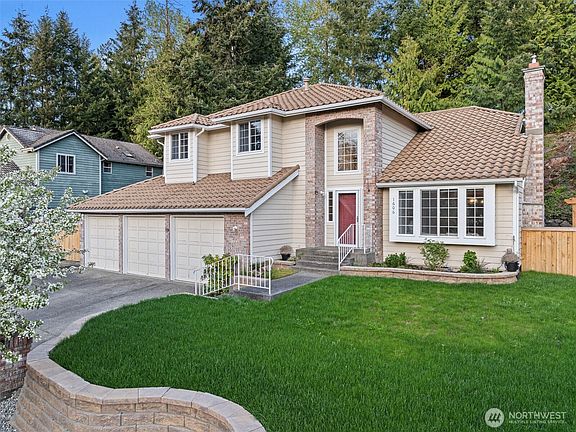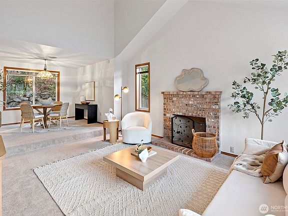Rare opportunity in quiet Manorwood North! This light-filled, well-maintained home features soaring ceilings, abundant windows, and a spacious layout. The living room flows into the formal dining area and a large kitchen with ample storage. The adjacent family room includes a cozy brick gas fireplace and overlooks a fully redone, professionally landscaped, park-like backyard—leveled for full usability. Upstairs offers a generous primary suite with double doors, a 5-piece bath with jetted tub, and a walk-in closet, plus three more large bedrooms. Brand new A/C, no HOA dues, and walkable to two schools. Minutes to freeways, shopping, dining, parks, and both Sounder train stations.