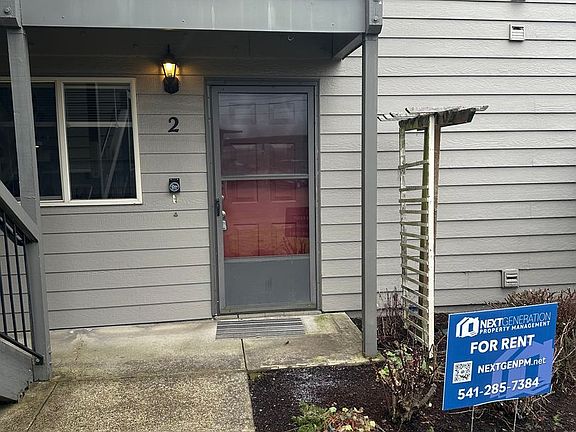 This cozy 2 bedroom, 1 bathroom apartment is spacious and quiet! **An individual under the age of 55 may be considered as long as they are not accompanied by any minors** Located conveniently to shopping, restaurants, freeway, Coburg Rd. and part of a 55+ community. This quiet safe community will make you feel like part of the family. This apartment feels so open and spacious! Lots of windows and natural light. New LED lighting and built in cabinets. Large living room with a sliding glass door that leads to a partially covered back patio area. Perfect for the BBQ! Fresh paint and new LVP flooring! Newer appliances! New ductless heat pump with AC! The bedrooms are large and roomy and have tons of closet space! Extra closet in the hallway. New bathroom floor and new toilet! Custom shower surround! Utility room off the hallway with washer and dryer hook ups. Landscaping and garbage is included in the rent! $40 flat rate charge for water and sewer. No smoking on the property! Comes with 1 off-street covered parking spot. One cat may be allowed with excellent references, additional pet rent and security deposit. This house won't last long! Call today for a showing or visit our website to apply!net Application required for each person 18+. $10/non-refundable application fee if we run your application. Tenants have the right to a refund if the landlord fills the unit before screening the applicant or the applicant withdraws the application in writing prior to the screening being conducted. First full months' rent and security deposit due at move-in. No minors. Housing intended and operated for occupancy by persons 55 YEARS OF AGE OR OLDER, NOT ACCEPTING RESIDENTS UNDER 18 YEARS OF AGE, in accordance with the Federal Department of Housing and Urban Development (HUD), Section 807 of the Fair Housing Act (42 U.S.C. 3607) as amended, (effective March 12,1989).