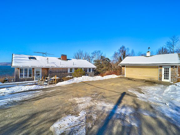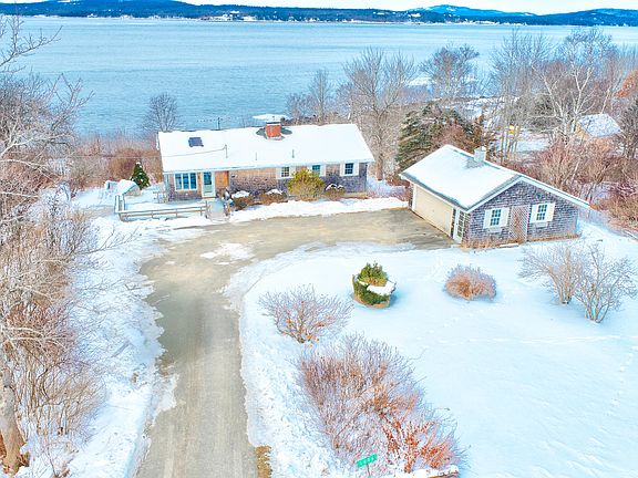 Sited high and dry overlooking Penobscot Bay, this mid-century ranch-style home commands truly exceptional views, unforgettable sunsets, and even its own private gravel beach. Designed for both comfortable living and easy entertaining, this home offers a spacious open-concept first floor complemented by additional finished living space in the basement. Architectural details such as modern fireplaces, exposed brick, built-in cabinetry, high ceilings, and skylights add character throughout. Amenities include an oversized garage, mini-split heat pumps, a propane standby generator, a first-floor primary bedroom, a paved driveway, a newer heating system, and a surveyed lot. Ideally located near Maine Maritime Academy, Castine, Blue Hill, and Bucksport. 30 min to Ellsworth, and just under an hour from Bar Harbor / Acadia National Park