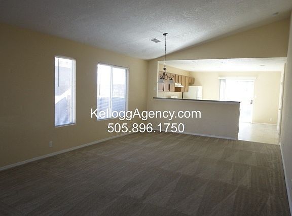 Open floor plan, 3 bedroom home! Large great room/dining area open to kitchen with breakfast bar plus room for a table. Kitchen includes gas stove, refrigerator, dishwasher, disposal, lots of counter space and closet pantry. Vaulted ceilings, window blinds, vinyl and carpet flooring, washer & dryer also included! Master has walk in closet, bath includes garden tub/shower and double vanity. 2 car garage w/remotes, refrigerated A/C, fully landscaped yard on auto drip system, fenced backyard. DIRECTIONS North on Unser from Southern Left on Pine Right on Penasco Rd Right on Costilla Rd Rental Terms: Rent: $1,195, Application Fee: $40, Security Deposit: $1,195, Available Now This property allows self guided viewing without an appointment. Contact for details.