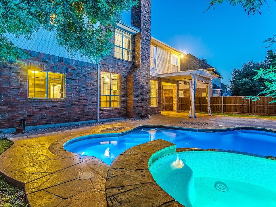 Beautifully Updated 4 BDRM, 3 BA W Pool & Spa + Arbor & Play yard in Beautiful Stonebridge Ranch! Sought After Master Suite + 2 BDRM's Up W Game Room! Desirable Mother In Law Suite Down. ISL KT Overlooks Family RM W Fireplace (Gas Starter) and has Granite & Travertine Counters, Stainless Steel Oven + Microwave, Dishwasher, Cooktop & Large Pantry! Travertine Floors in KT & BK & Hardwood Floors in DR, Family, & Downstairs Bedroom. Plantation Shutters! Ceiling Moldings. DR & Office W French Doors Down! Master has Travertine Floors, Dual Sinks, Tub + Shower, Medicine Cabinet & Huge WIC! Two Secondary BDRM's Share Jack-N-Jill Bath Marble Countertops, Remodeled Shower, & Barnhouse Doors. New Pool Plaster & Tile - 2022. Two Furnaces & One AC Unit - 2022. One AC Unit - 2019. Whole House Water softener. Water Heaters - 2022. Oversized 2-Car Garage. Incredible Stonebridge Ranch Amenities Include Beach Club, Tennis Courts, Aquatic Center, Lakes, & Walking Trails - Only $860 - Year!