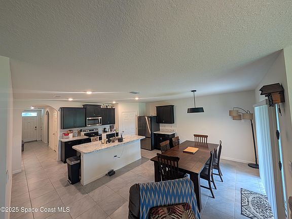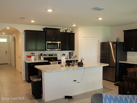 Step into this bright and inviting 4 bedroom, 2 bathroom home built in 2021, featuring an open layout perfect for both daily living and entertaining! The kitchen is the heart of the home with its spacious island, stainless steel appliances, and easy flow to the living area. Tiled floors keep things cool and stylish, and BRAND NEW FLOORING AND PAINT make this home amazing! Relax on the covered patio overlooking a large backyard, ideal for weekend barbecues or quiet evenings. A 2-car garage with extended driveway offers plenty of parking. Located in peaceful Southwest Palm Bay, this home welcomes one small pet and is available for a 12-month lease starting October 1st. Schedule a tour today!