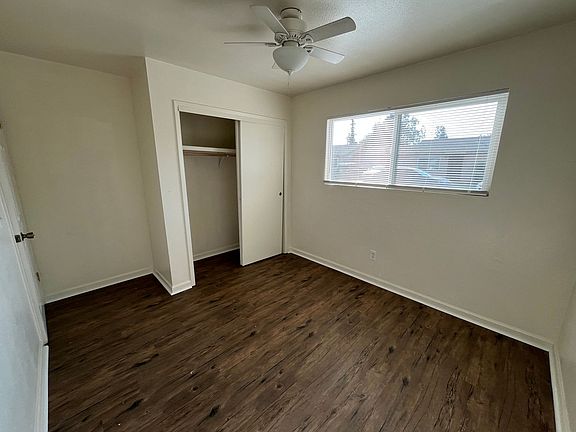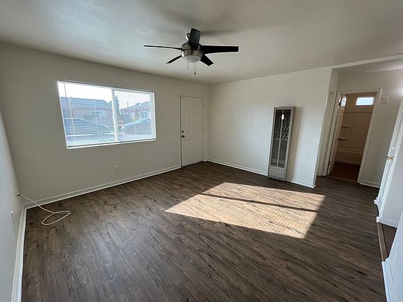 Found in a quiet and secluded neighborhood, this unit features a wide array of furnishings! These include linoleum and laminate wood floors throughout, ceiling fans and window AC units. The bedrooms offer ample space and generous closets. The kitchen comes equipped with a gas stove and beautiful cabinetry. There's also a fenced backyard with a great view of the foothills and an attached 1 car garage! This unit won't last long, apply now!