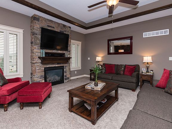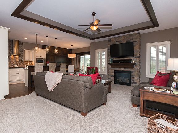 Beautiful ranch home in popular Deer Creek neighborhood in Ankeny. Home has 4 bedrooms, 3 bathrooms, and offers over 2,700 square feet of finished space. Impressive features include a stone firepace in main floor living room, custom full wainscot wall in dining room, chef's kitchen with hood vent and gas cook top, wood shutter window treatments throughout, and upgraded lighting. Walkout basement features custom built in bookshelves surrounding stone fireplace, wet bar, and access to large stamped concrete patio with hot tub, built-in firepit, and half wall. Beautiful, extensive landscaping in front and back of fenced yard. Must see!