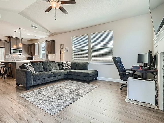 Discover your ideal living space in this stunning contemporary ranch! Enjoy the open concept layout featuring stylish laminate floors throughout. The vaulted ceilings in the living room and main areas create a bright and airy atmosphere, complemented by a cozy gas fireplace. The quartz kitchen is a chef's dream, equipped with all stainless steel appliances, including a fridge and gas range. The spacious main bedroom boasts a quartz bathroom and a walk-in closet, providing ample storage. Stay comfortable year-round with gas forced air heating and air conditioning. The garage comes with an opener for your convenience. Step outside to a fully fenced backyard with a sprinkler system, and enjoy barbecues on the patio complete with a gas connection never worry about running out of fuel! Plus, there's no HOA to contend with!