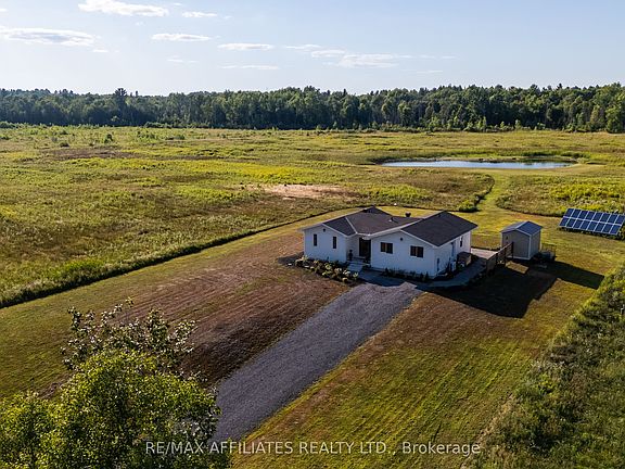 One of the most exciting features of this property is its development potential. With approximately 1500 feet of frontage along Pittston Road, the site easily surpasses the Townships minimum requirement of 147 feet of frontage per lot. Recent updates to the Official Plan (2024) reduced the minimum lot size from 2 acres to just 1 acre, creating a unique opportunity for a buyer to pursue up to 8 potential severances along the existing road. Alternatively, the parcels could be reconfigured into larger 3+ acre estate lots to suit market demand, whether geared toward custom homebuilders or lifestyle buyers looking for more space. Adding to its appeal, the property's northern boundary adjoins nearly 200 acres of land-locked Crown land. Combined with the Rural (RU) zoning allowances which include single dwellings, agricultural uses, and on-farm diversified uses this property stands out as a strategic long-term investment, whether the next owner is seeking farmland, a hobby farm, or future building opportunities. The property's pond is perfect for skating in winter and watching your kids skip rocks and catch frogs in warmer months, while every evening treats you to impeccable sunsets. This 2024 custom-built 3-bedroom, 2-bathroom home features timeless board-and-batten siding that blends beautifully with the natural surroundings. Located in the heritage-rich village of Spencerville, this property combines peaceful living with everyday convenience. Just minutes to Highway 416 and only a short drive to Highway 401, you can reach downtown Ottawa in under an hour. For families, the property is on a school bus route with access to excellent schools in the UCDSB and CDSBEO (with French Immersion available). Modern construction, acres of natural beauty, and the perfect balance of tranquility and accessibility is a rare opportunity that offers both everyday comfort and long-term value. Today its your dream home tomorrow, its your retirement plan. Buyer to complete due diligence.
