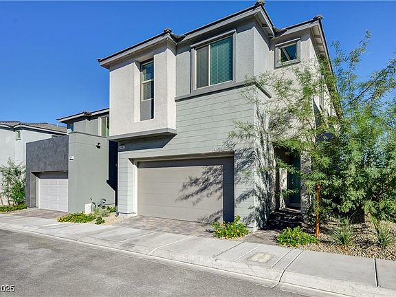 This like-new residence is nestled within a gated enclave in Summerlin West’s Kestrel Commons village. Enjoy close proximity to notable schools, premier shopping, and dining destinations that make Summerlin one of Las Vegas’s most desirable communities. The open-concept main level features a bright and spacious living area seamlessly connected to the kitchen complete with stainless steel appliances and a generous walk-in pantry. Situated on an elevated lot, the backyard provides enhanced privacy - ideal for relaxing or entertaining outdoors. Upstairs, you’ll find four bedrooms plus a versatile loft. The primary suite offers peek-a-boo Strip views and features a large quartz-surround walk-in shower.