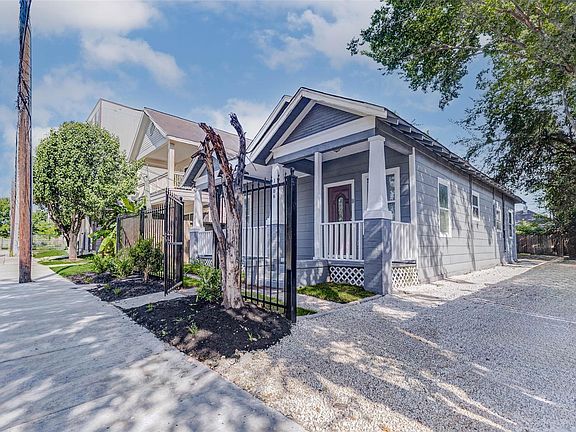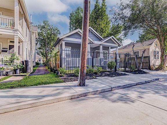 Welcome to this charming & versatile residence in the heart of Midtown, directly facing Wiley Park & just a short walk to Downtown & Allen Parkway. This property offers endless possibilities—live in it as a single-family home with private guest quarters, or take advantage of the separate back unit with its own meter for income-producing potential. The front residence features 2 beds & 1 bath, while the private rear unit offers an additional 1 bed & 1 bath. Inside, the home has been remodeled with modern finishes. The kitchen showcases granite countertops & a stainless steel sink with a gooseneck faucet. The bedrooms feature ceiling fans, large windows, & comfortable layouts, while the bathroom offers updated vanities, modern fixtures, & tub/shower combos accented by mosaic tile. Recent updates include new hardwood flooring, fresh paint, replaced AC condensers, & updated electrical. Step outside to a fully fenced yard with gated entry, a covered front porch, & a green backyard space.