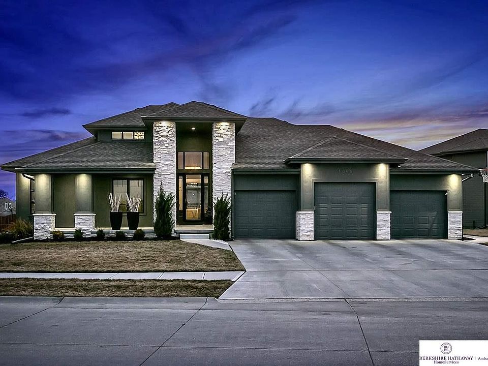 Wow! Be ready to be impressed in this gorgeous 5-bedroom ranch home in popular Windgate Ranches! Located in the heart of Elkhorn school district, this 2016 custom built home features gorgeous white kitchen, gas cooktop, walk-in pantry, and wide plank wood floors. Enjoy the open floor plan complete with spacious living room, fireplace and huge covered deck. Plus, an entertainer's dream awaits in the lower level finished in 2017 with oversized bar with tile flooring, space for pool table, surround sound, custom window treatments, bonus flex room and two lower level bathroom. Finished off with an oversized heated garage and close to schools and shopping. Don't let this one get away!
