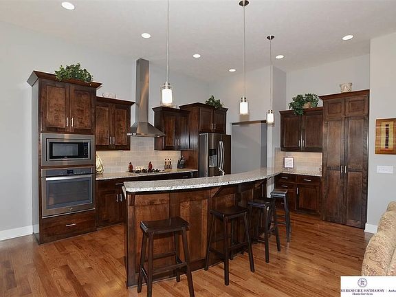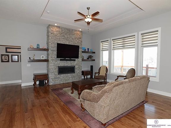 Fantastic 5 bedroom, 4 bathroom walkout ranch home! Wood floors in the entry, living room, kitchen and dining area. Granite countertops and cherry stained cabinets. Gas fireplace with stone to the ceiling. Master bath with two closets, whirlpool tub and walk in shower! Wet bar and spacious entertaining area in the basement! Tons of landscaping, oversize patio, large covered deck and Iron fence! All appliances stay excluding the kitchen fridge. Close to the park and schools. Easy access to Dodge!