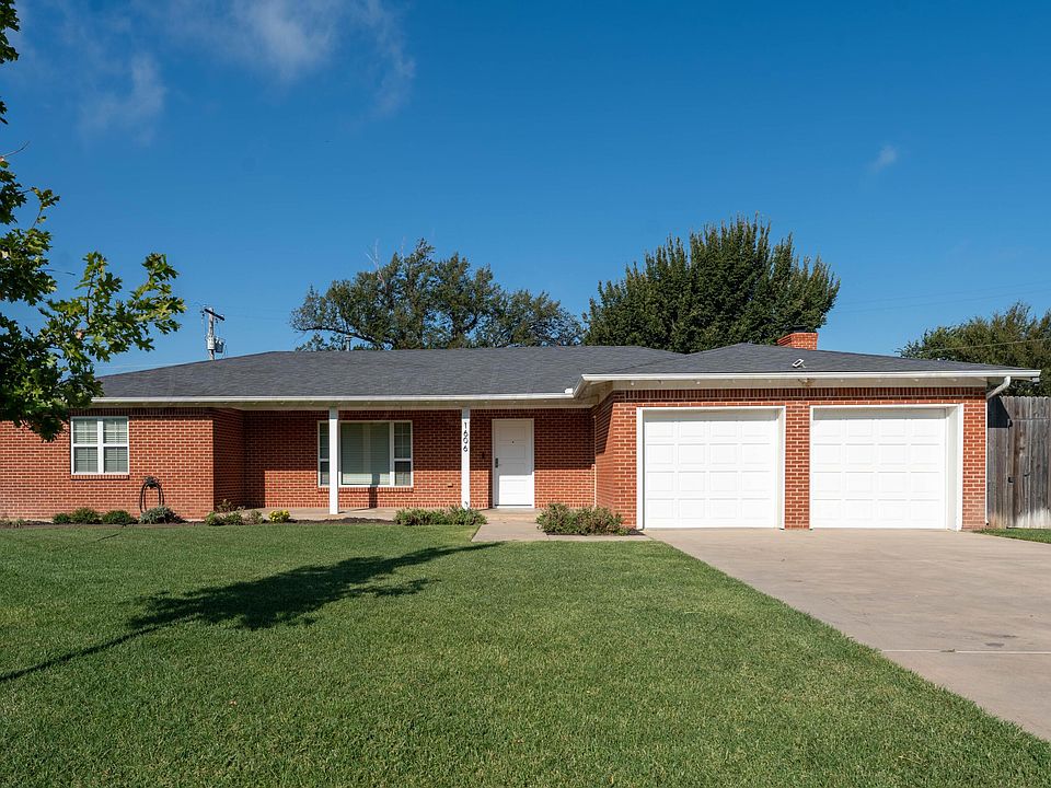 This beautifully remodeled home offers a seamless flow and modern updates throughout. Featuring stunning wood flooring that adds warmth and elegance, the home is both functional and stylish. The kitchen is a chef's delight, with sleek granite countertops that beautifully complement the contemporary cabinetry. An isolated primary suite offers privacy and relaxation, with a luxurious master bath that's perfect for unwinding after a long day. With two living areas, there's plenty of space for entertaining. The cozy fireplace adds a touch of charm. Your guests will appreciate the powder bathroom. Convenient office area too. The utility room boasts a large counter with granite countertops. Covered porches front and back overlook a manicured lawn with sprinklers.