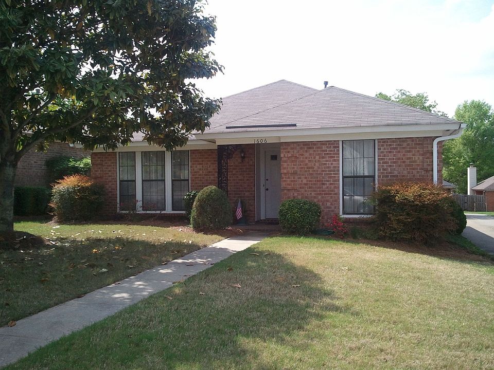You must visit this one-owner, custom designed Woodmere garden home, located on a premiere cul-de-sac of Stratford Square that???s so very convenient to I-85, and in walking distance to community parks and the Alabama Shakespeare Festival. The home???s foyer provides dual entry to the great room, and leads to a second master bedroom. Home features a high trey ceiling and great use of windows in the common area, an eat-in kitchen with pantry, upscale cabinetry in kitchen and utility room. The private covered patio is complemented with a beautiful courtyard flower garden and privacy fencing. While the home is totally move-in ready, it is priced to support buyer???s preferred updating of such items as carpet and painting. This is also one of the few area homes offering a built-in double carport.