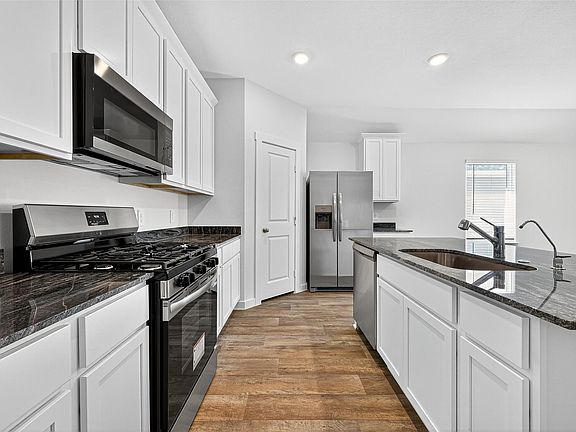 Welcome to this charming one-story home on a corner lot, never before occupied. Situated near the community park, playground, pool, and lake for your convenience. This property showcases stainless steel appliances, a refrigerator, washer/dryer, and a covered patio in the backyard. The primary suite includes a walk-in shower and a separate garden tub. Two secondary bedrooms in the front, along with a flexible room in the middle, offer versatility as an office, study, game room, or extra bedroom. Prime location with excellent schools, walking trails, and various community amenities.