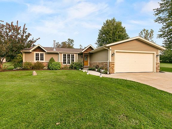 Picture perfect combination of privacy, elbow room, totally updated home & amazing 30 x 54 newer shop. Beautiful 6.88 acres features woods, open space, fruit trees & unlimited deer, birds & wildlife. Hunt right out your back door! Move-in ready split bedroom ranch offers hardiplank siding, 19 x 29 composite deck & updated Andersen windows. Interior boasts remodeled kitchen w/newer appl, MBR suite w/programmable multi-head/body spray shower & travertine tile. Cozy up to the wood stove in the LR. Basement ready to be finished. Multiple outbuildings incl 30x54 partially heated shop w/ 2 overhead doors, concrete floor, floor drains,TVs & 100 amp panel. Addt'l approx 14x22 hardiplank sided detach GA w/adj shed. Perfect location a block from Erin School and very close to Erin Hills Golf Course