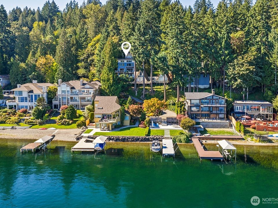 Experience lakefront living at its finest. Spectacular fully renovated home is move in ready. Thoughtfully designed throughout-Dramatic Nana walls open seamlessly to a full-length heated deck for year-round indoor/outdoor living. Gated 40 ft of prime waterfront with new dock (shared with one home) private boat lift. Privacy and exclusivity with easy waterfront access. Breathtaking lake & mountain views, circular drive, 2-car garage & central A/C. Whether it's morning coffee on the deck or dock or afternoons on the boat this home blends luxury, lifestyle and the beauty of the Pacific Northwest. Just minutes to downtown Bellevue & Redmond + Weowna Park trail. "Moving to Lake Sammamish, the BEST move you'll ever make!"