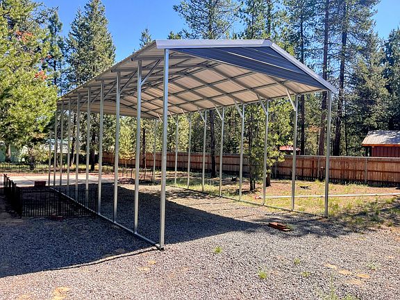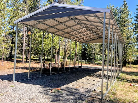 Ready to build your dream home! This .98-acre lot is already equipped with water, a standard septic system, and electricity. The corner lot is level and well-maintained. It includes an 18x35 RV carport, a 20x20 concrete patio, a 10x20 storage unit with double doors, a smaller storage unit, and a gravel circular driveway. Located just around the corner from La Pine State Park, you can enjoy hiking, biking, river floating, and kayaking under the stunning Cascade Mountains. It's ideal for a quick getaway or a temporary stay while you build your dream home.