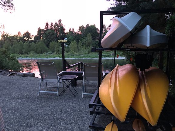 We have magnificent views of the Clackamas River and direct access to the water right outside our door. We love salmon fishing and catching crawdads in our backyard. We have a finished basement. There are new sold oak wood floors on the upper level and new porcelain floors in the basement. We have a mother in law quarters in basement with a 2nd kitchen. We also have a new high efficiency lenox furnace/air-conditioner and the upstairs range/oven and refrigerator are less than 5 years old. The master bath has been entirely remodeled with granite counter tops, tile floors & walk in shower, and toto toilet and sinks. 2nd bath has been remodeled with a new tile floor, granite counter tops and toto sink. The bath and kitchen downstairs has been remodeled with new quartz counter tops and porcelain wood look floors We sit right on the river and have stunning views with a large deck overlooking the river on the entire 2nd floor. There is a hot tub on the deck right outside our bedroom and we love to sit in it and watch the beavers, ospreys, and eagles as they perch in the trees in our backyard looking for salmon.