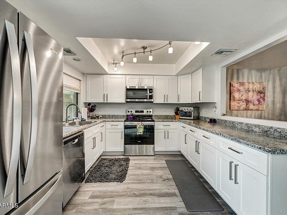 Beautifully remodeled 4 bed, 2.5 bath home with a 2.5-car garage in the quiet, sought-after Canyon Crest community. Features new flooring, upgraded lighting, and a stylish modern kitchen with open concept living spaces perfect for entertaining. Spacious bedrooms and designer finishes throughout. Enjoy community amenities including a sparkling pool, clubhouse and tennis. Conveniently located near top schools including several colleges, shopping, dining, golf and freeway access. Two miles from the gorgeous Cave Creek Golf Course! Perfect combination of comfort, style and location!