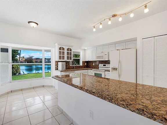 Live in this bright and spacious home by the lake! This two-story beauty has 4 bedrooms and 3 full bathrooms, with a convenient 1/1 on the first floor. The kitchen, dining, living rooms, and the master bedroom’s balcony all offer amazing views of the water. The master bathroom features a separate shower, tub, and jacuzzi jets. The house covers 2,988 square feet and sits on a large fenced 6,300 square ft lot. It also boasts volume ceilings, full tiling, and a generous two-car garage with closets and A/C split unit. It is located near the new Pointe Kendall Town Center, Baptist Health West Kendall, Starbucks, Target, Restaurants, Home Depot and much more.