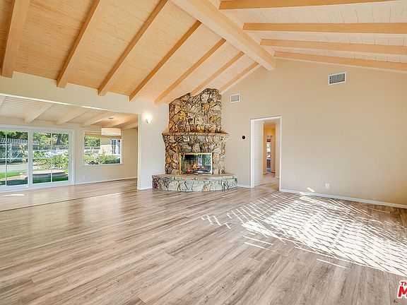 Light and bright 3 bedroom/2.5 bath ranch style house for lease in the heart of Sherman Oaks, South of the Boulevard, in desirable Royal Woods neighborhood. Featuring spacious formal living room with vaulted beamed ceiling and fireplace, formal dining room with fireplace, large family room with vaulted beamed ceiling and bar, eat in kitchen and bonus sunroom. Many rooms open to the lush grassy yard with multiple patios, sizable pool and mature trees. The romantic primary bedroom suite with fireplace opens to the backyard as well and offers ample built-in storage including a huge walk-in closet. The primary bath offers oversized jetted spa-tub, separate shower, dual sinks, bidet and vanity. There are laundry hook ups inside, two additional storage rooms, new roof, new HVAC units and so much more. Super convenient location near Ventura Boulevard, entertainment, shopping and dining, with easy access to freeways and the Westside.