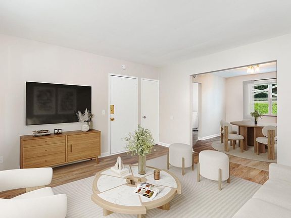 Large open living spacesBright inviting apartmentFormal dining roomWood and vinyl flooringThoughtful updates