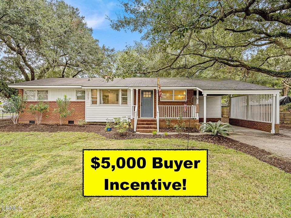 WOW! The seller is offering a $5,000 BUYER INCENTIVE to cover closing costs, an interest rate buydown, a purchase price reduction - the choice is yours! Welcome to this classic brick ranch, ideally situated in one of the most sought-after neighborhoods—just minutes from the Spanish Moss Trail, downtown Beaufort & Port Royal. Inside, you'll find a renovated eat-in kitchen featuring Quartz countertops, a tile backsplash, new appliances, a nostalgic bench seat, & a pocket door. Original HW floors add warmth & character, while modern upgrades such as a tankless water heater, & new doors enhance comfort & efficiency. Additional highlights include a dedicated laundry room, new porch railing, & a freshly painted exterior. Step outside to a spacious, fenced yard - perfect for kids, pets, & entertaining. This home blends timeless charm with thoughtful updates, making it a wonderful place to call home. Don't miss your chanceschedule a showing today!