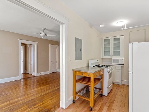 This beautifully renovated apartment features two spacious bedrooms, a sleek and modern bathroom, and gleaming hardwood floors throughout. The open-concept living area is bathed in natural sunlight, creating a warm and inviting space perfect for relaxing or entertaining. The updated kitchen boasts granite countertops, stainless steel appliances, and elegant cabinetry, offering both style and functionality. Enjoy the convenience of on-site laundry and the comfort of included heat and hot water. This pet-friendly home welcomes dogs under 30 lbs and provides easy street parking options. Located in a well-maintained apartment complex with gas heating, this unit is perfect for students and professionals alike. Available September 1, 2025 don t miss this fantastic opportunity! Move-in costs include the first month s rent, last month s rent, a security deposit, and a broker fee, each at $3,450.