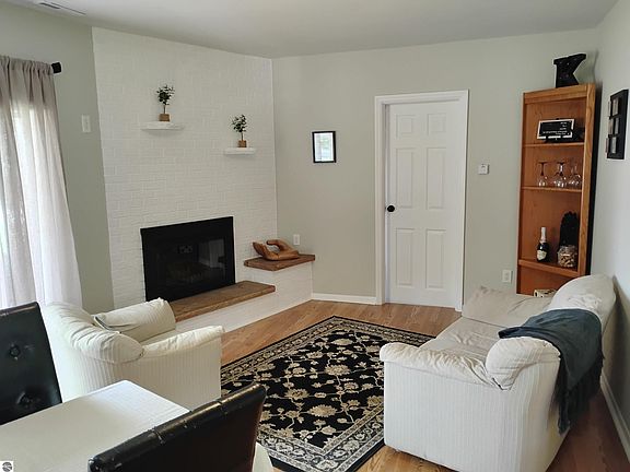 This move in ready 3 bedroom home is situated on a large corner lot in a desirable location near the hospital, schools, and shopping. The full length covered front porch welcomes you home. Even though this has two front doors this home is not a duplex. The front door just in front of the driveway enters into a spacious room with a bow window and a brick wood-burning fireplace that can be used as a dining room, family room, or a home office with its own entrance. Spacious living room with office area. Restful feeling inside with mostly neutral colors throughout. There is a lot of storage space in this home including three hall closets. Newer surface mount can lights in hallway and two of the bedrooms and newer laundry room exterior door. Vinyl windows throughout home. New vinyl flooring and toilet in bathroom in 2025. Seller is a licensed real estate broker in the state of Michigan. This home shall not last long on the market so come take a look today!