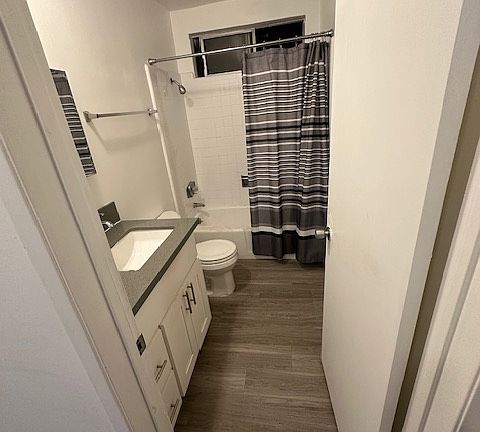 Recently remodeled with modern flooring and new fixtures. Dishwasher, oven / stove, microwave, and stainless-steel refrigerator.