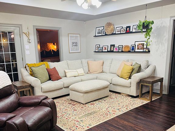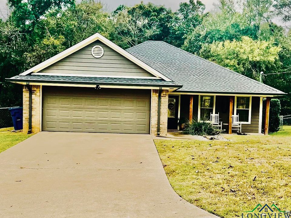Welcome to this meticulously maintained 3-bedroom, 2-bath home in the highly desirable White Oak ISD. Built in 2002 and located on a quiet, dead-end street, this beautiful home offers a thoughtfully designed living space and a large, fantastic outdoor retreat blending comfort and quality while boasting modern updates throughout. Step inside to find a bright, open floor plan with stylish finishes and recent upgrades in every room including some smart features! The kitchen features stunning granite countertops and custom stone beams, while both bathrooms showcase elegant marble surfaces — including a full remodel of the primary bath completed in 2025. Outside, enjoy a large, covered patio with a pull-down big screen for family movie nights, and a beautiful pergola overlooking a fully fenced yard — perfect for gatherings, kids, or pets. The home also includes a 50-amp generator plug, automatic sprinkler system, and numerous recent improvements for peace of mind: roof replaced in 2019, gutters added in 2020, and HVAC replaced in 2017. This move-in-ready gem offers great curb appeal, a fantastic layout, and pride of ownership in every detail. Don’t miss your chance to call this one home!