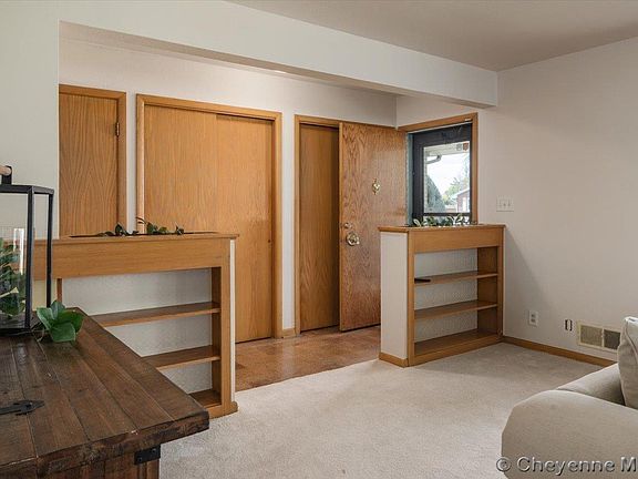 Gracious, spacious ranch-style home with 5 bedrooms, 2 baths, 2 fireplaces on a convenient corner lot. Light, bright and open with an enclosed sunroom for year-round enjoyment. Freshly painted interior, new luxury vinyl plank flooring, new carpeting and a brand new roof. Basement craft/stained glass workshop. Lush mature landscaping with automatic sprinkler system. Fully fenced yard back yard. Walking distance to VA Hospital, Cheyenne Regional Medical Center East, schools, recreation, and grocery stores.