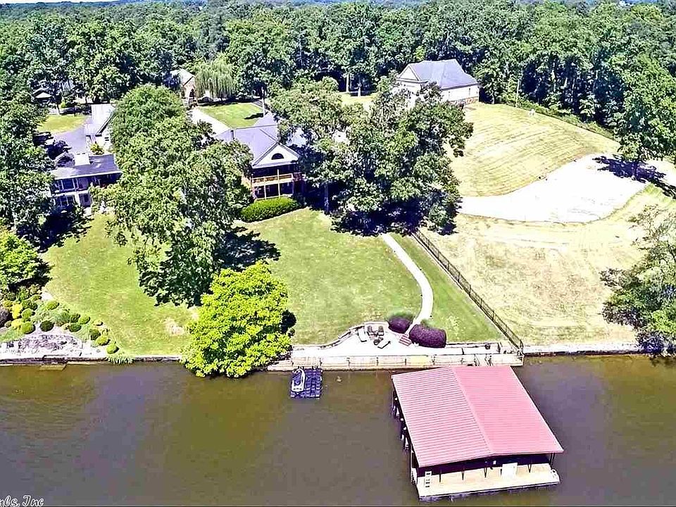 EXCELLENT VIEW, DEEP WATER & 5067sf BRICK HOME! Through a beautiful entry-way, look across living area to sparkling Lake Hamilton. Great family home with formal and informal living areas each w/ fireplaces. There are hardwood floors, new carpeting and new appliances. Downstairs includes sitting area, pool table & kitchen w/ bar, bedrooms & workout rm.or office. Step out to lg. covered patio & down to boardwalk, lake patio, lg double dock w/ lifts & sea doo docks. Everything a lake house should have!