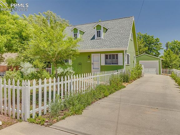 A charming Westside Cape Cod with a white picket fence—doesn't get much better than this! The 97-acre Sondermann Park entrance is virtually across the street. Garden of the Gods Park, Colorado College, downtown Colorado Springs, and Old Colorado City are just minutes away! The "Green House" has been an Airbnb for the past 2.5 years and has been meticulously maintained and professionally cleaned. (Please note: the next owner will not be able to obtain a short-term rental permit UNLESS you'll occupy for at least 185 days of the year) Inside, you'll find tile floors, slab granite kitchen countertops, plantation shutters, and previously remodeled bathrooms (please note, there is no bathtub). The stairs to the upper level are hardwood, and the entire upper level features hardwood flooring as well. Yes, it does have central air conditioning! The exterior was painted and the fence stained white less than two years ago. The oversized one-car garage is fantastic and includes an exterior EV charger outlet. Come see for yourself—the Westside is the best side!